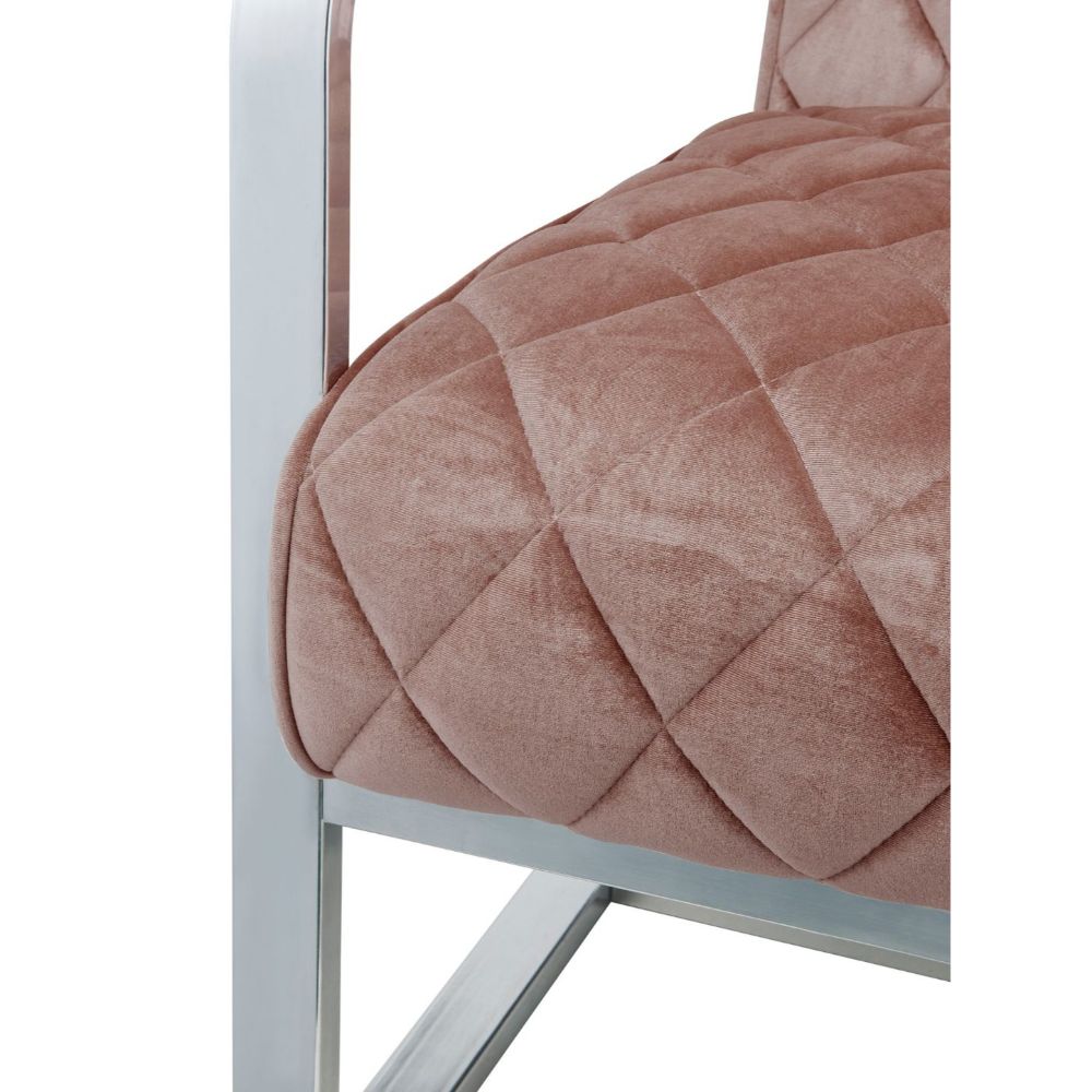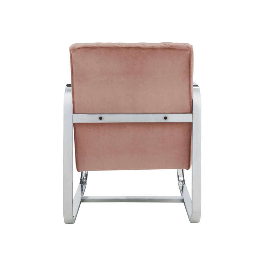 Are you looking for a spectacular addition to your home? Our Tasmine accent chair will be a perfect choice. The sleek and sturdy chrome metal base offers long-lasting durability and adds a stylish touch to the entire design. Upholstered in gray or pink velvet cushion that features diamond texture, the chair is well-proportioned to offer ultimate coziness.