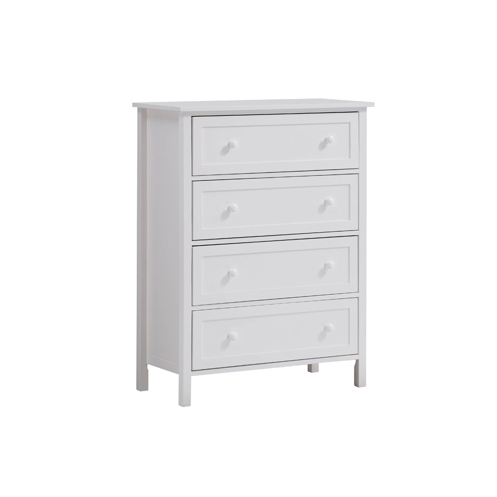 Keep our bedroom well organized with the Iolanda bedroom collection. The refreshing white finish makes it easy to style around and will give any room an instant upgrade. The bed features two storage drawers, convenient for not taking up any additional space in the room. The footboard has an open storage compartment that will keep shoes well organized. Increase the function in your room with the matching case goods. They offer plenty of storage options that will accommodate your needs.