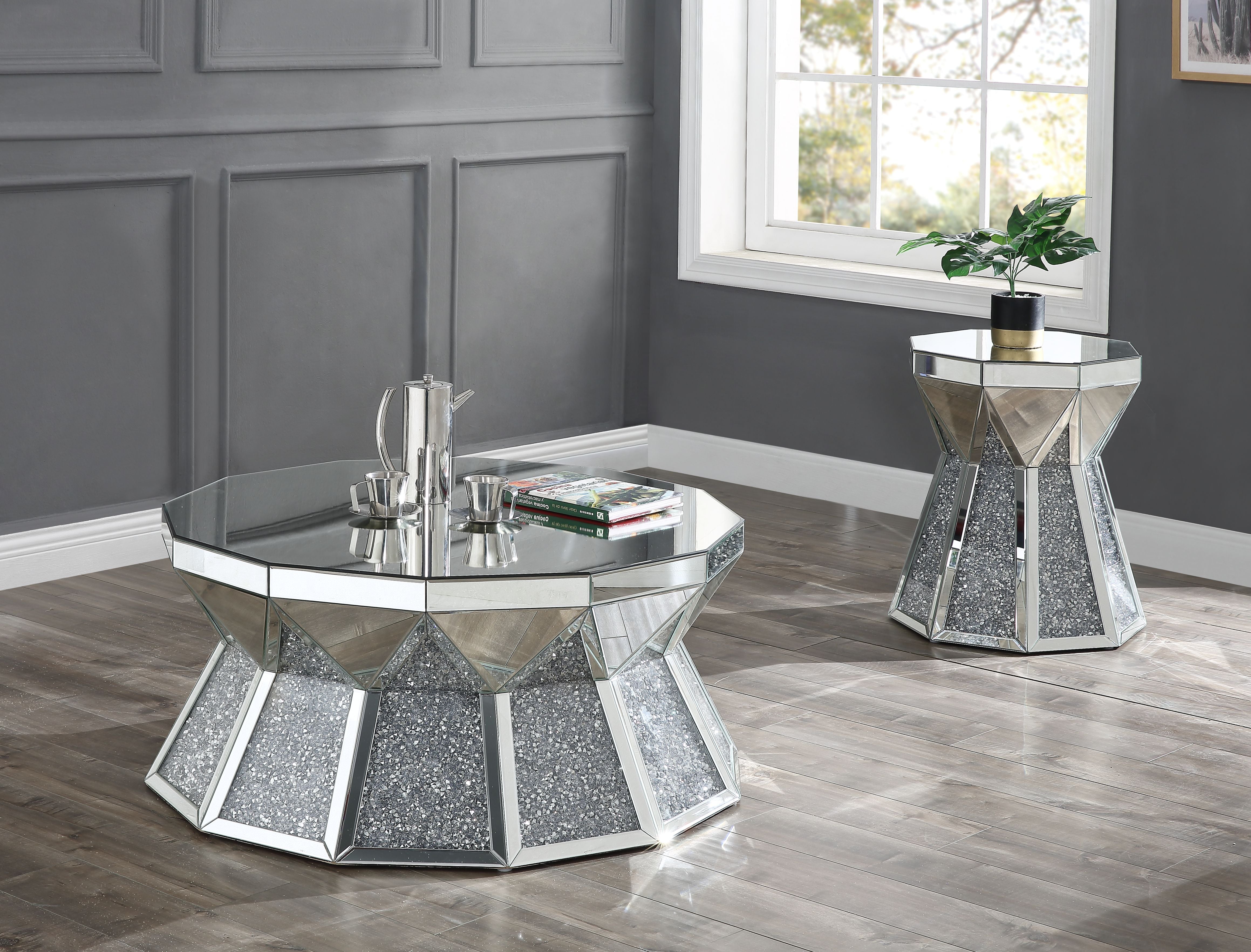 The Noralie Coffee Table is the perfect centerpiece for any social gathering. It's mirrored table top works perfectly with the sparkling faux diamond inlay of the pedestal table base. With stunning design details, this unique accent piece complements a wide range of d cor. Its modern design is a useful addition to any living area. Reflect your sense of style with the Noralie Coffee Table