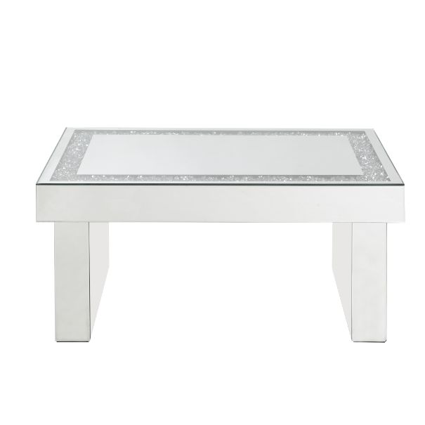 Go full glam with this Noralie Coffee Table. The beautiful mirrored finish and glistening faux diamonds inlay will reflect light and make any room appear larger. It provides a spacious table top ample enough for displaying various decor items while the sled base gives the table a stylish and sturdy support. The detailed border with faux diamonds inlay on the top achieves a gorgeous glam style. Adds light and shine to your room decor with the Noralie Coffee Table.