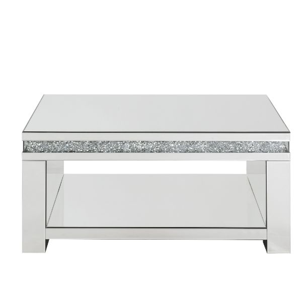 A chic sidekick for your sofa, this glamorous coffee table provides the perfect space to spread your magazines after a long day. Scatter light throughout your living space with its faux diamonds inlay and gleaming mirrored finish. A standout on its own or accentuated with your decor. Featuring a multipurpose lower shelf for all your storage needs. The Noralie Coffee Table will make your collection shine and reflect your sense of style.
