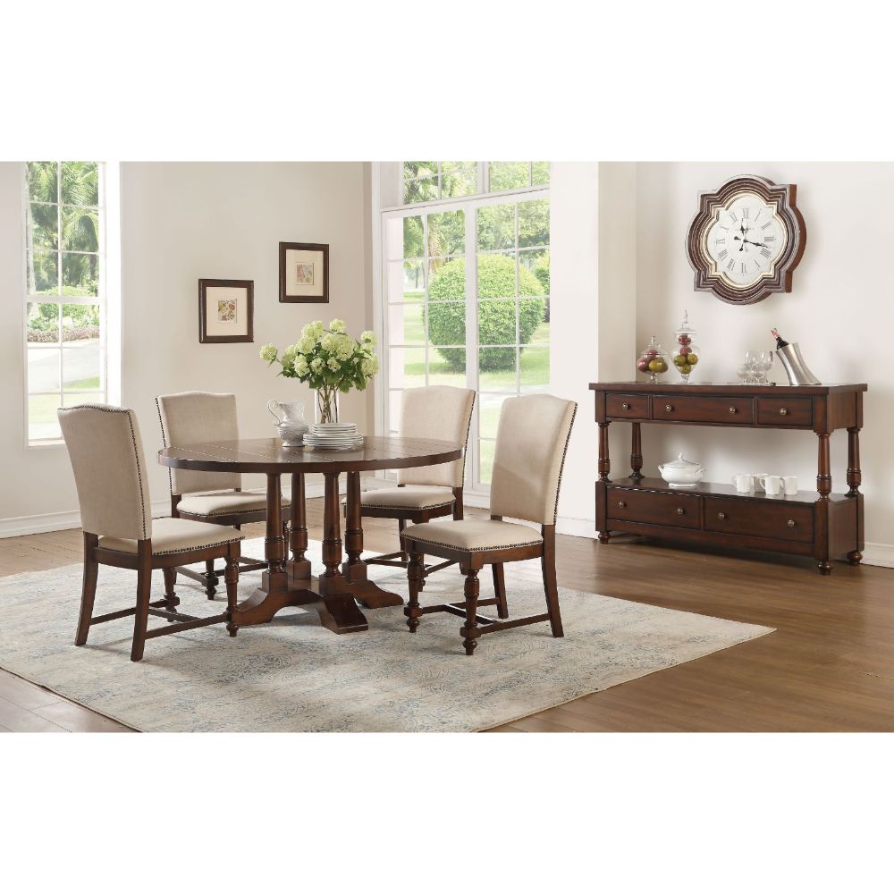 Creating a fantastic formal dinging set in your home, this Tanner collection will be the best option you'll have. It features in cherry finish that makes your dining area full of warm atmosphere. Offering rectangular and round pedestal table with matching chairs to meet your diversity needs.