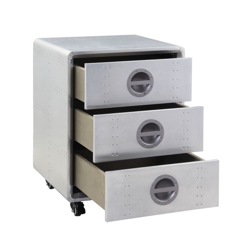 Switch up your style in the study with the clean-lined Brancaster desk, a perfect addition for achieving an industrial look. Whether you re working from home or simply scrawling a quick to do list, having a spirited space to get things done always makes them more fun. This beautiful desk features a stunning patchwork aluminum top and sturdy metal sled legs. Matching case pieces for this modern masterpiece include a storage cabinet with three drawers. Offering a blank canvas for all your desktop ideas, this piece is perfect for any room d cor.