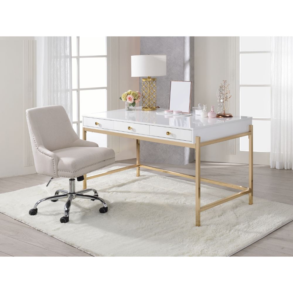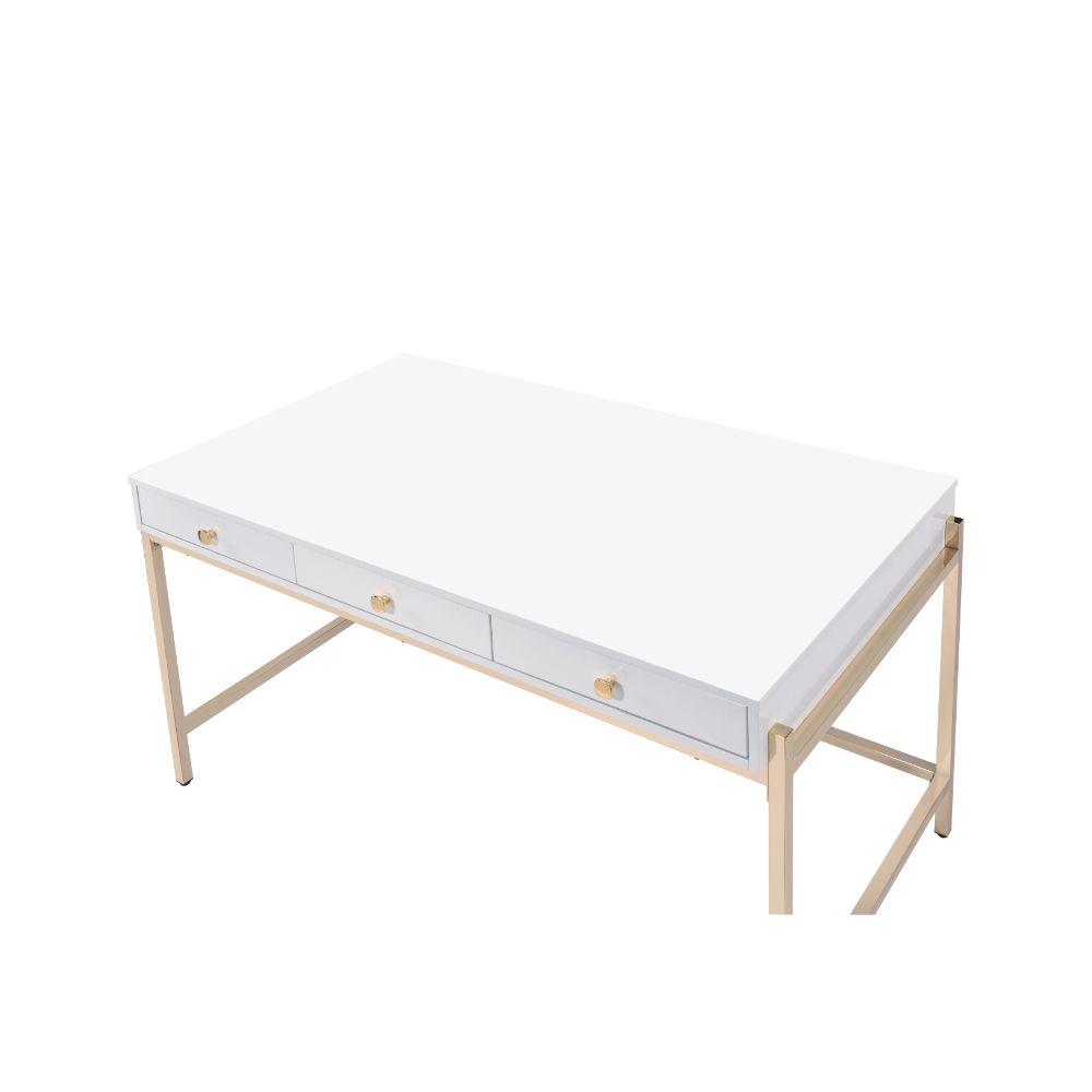 Rectangular Writing Desk Storage: 3 Drw Wooden Top+Drw Metal Straight-Square Leg (Back Open) Drawer: GLIDE) Side Metal, INSIDE) White Finish, Manual-Close, Hardware: Single Knob Handle