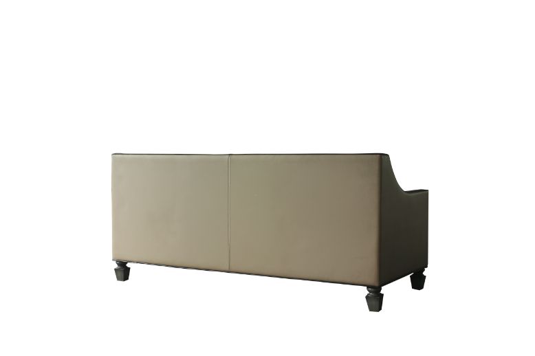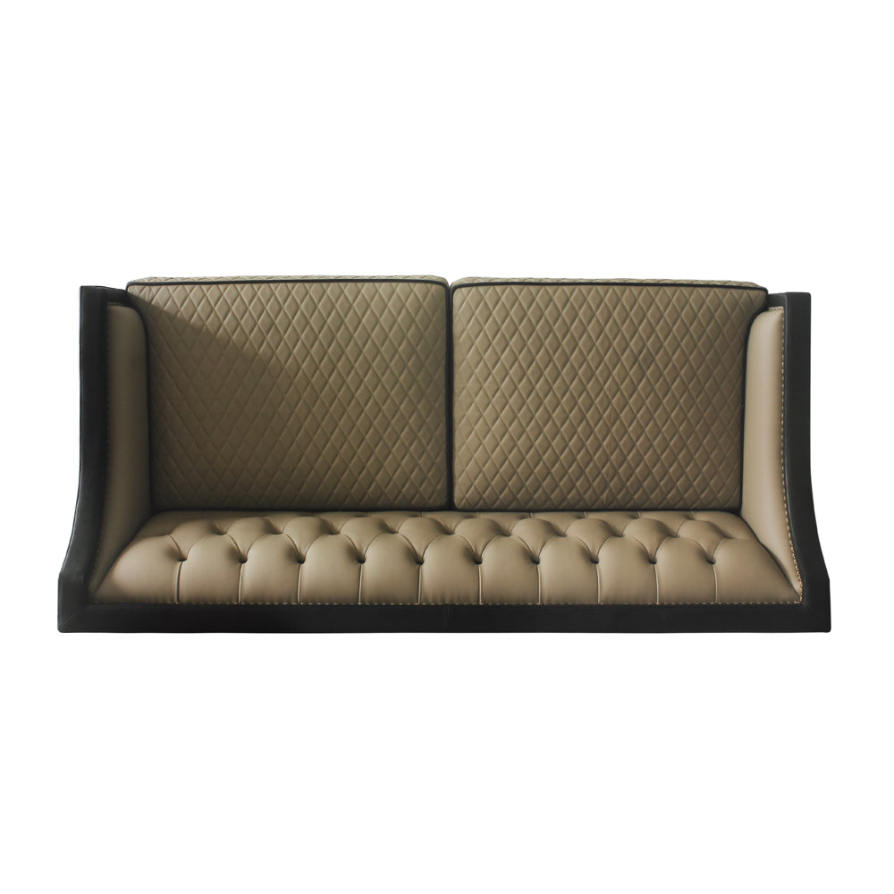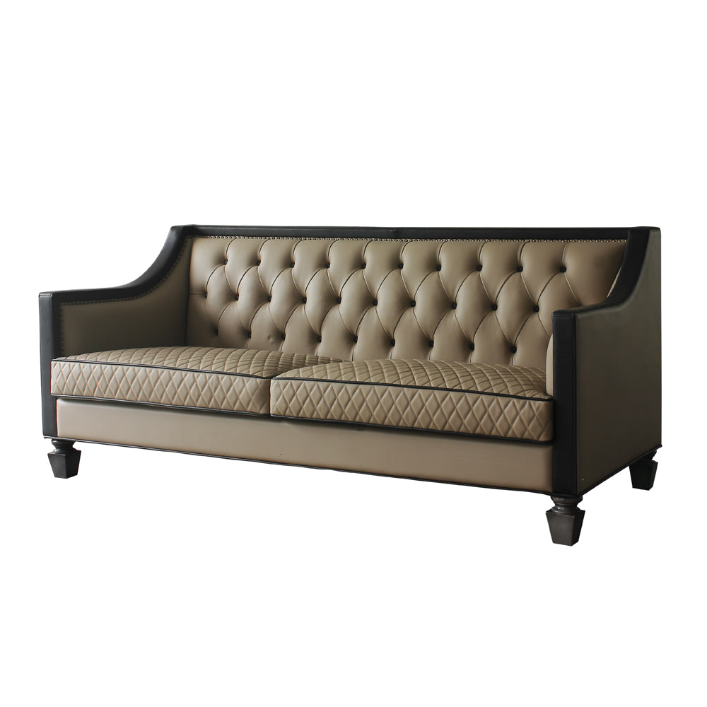 A combination between simplicity and exquisite; this House Beatrice sofa set offers a glamorous focus. Solid structure beautifully upholstered with faux leather. Featuring button tufted backrest and nail-head trim, the hand-crafted pieces enhance the beauty of the detailed wood work and craftsmanship. Superb in its attention to details, every inch is a statement of outstanding elegance and style.