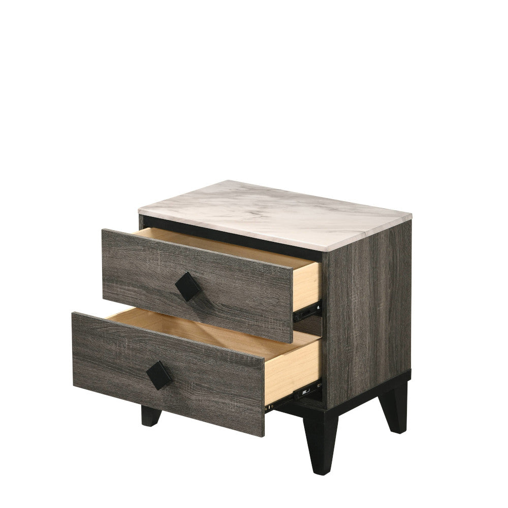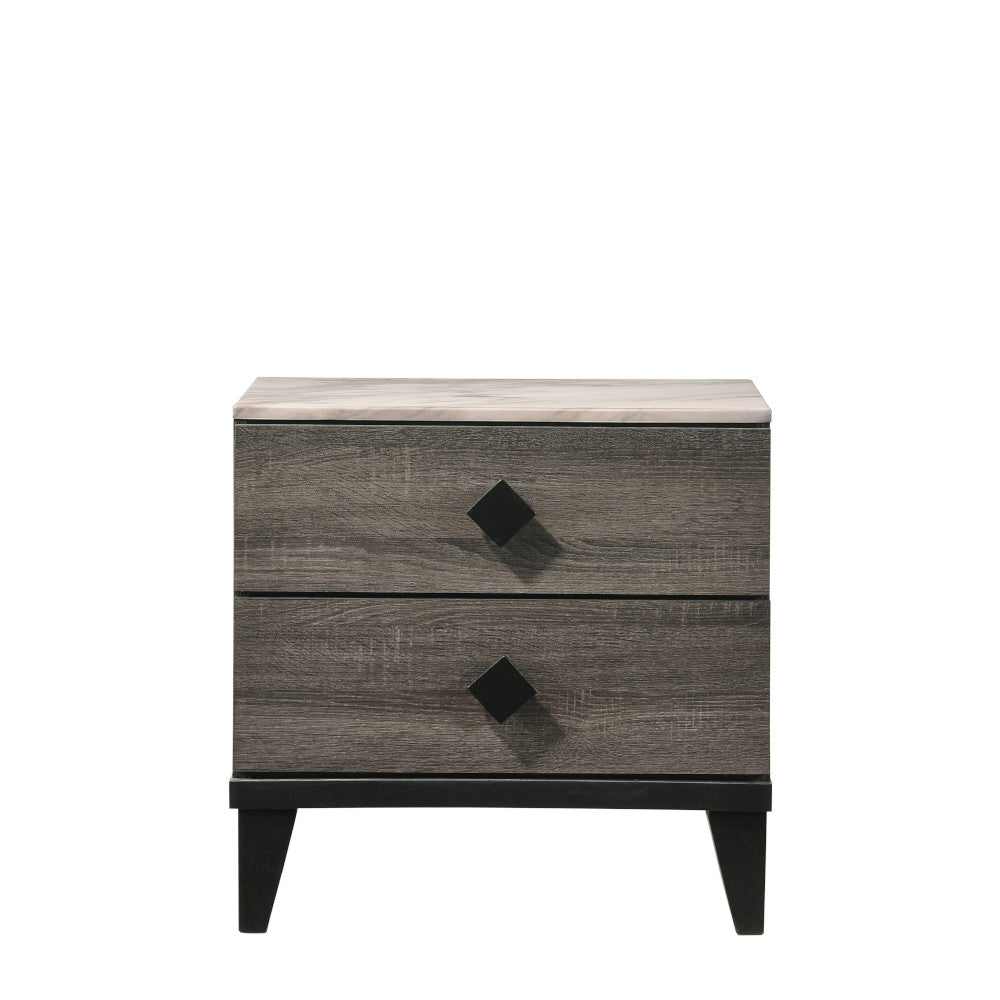 2 Drw Drawer: GLIDE Side Metal (3/4 Ext.), DOVETAIL English Front & Back, Veneer Lined (NO FELT), Safety Stop Included, Manual Close, Dust-Proof Included, Hardware: Single Pull Knob (Wood, Black Finish) CONSTRUCTION] Wooden Case-Leg: Wood (), Veneer (Foil), MDF Faux Marble Top Wooden Tapered Leg & Trim Base: Black Finish