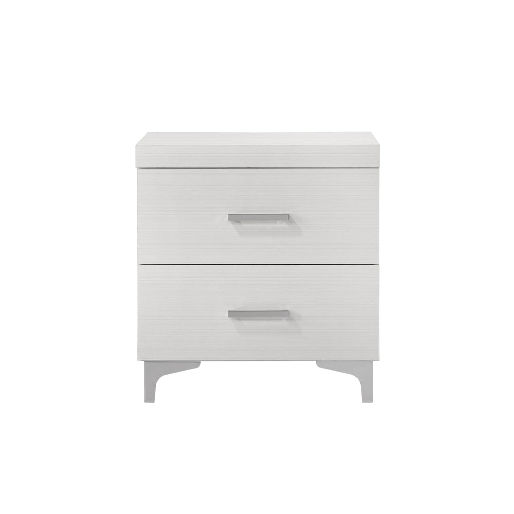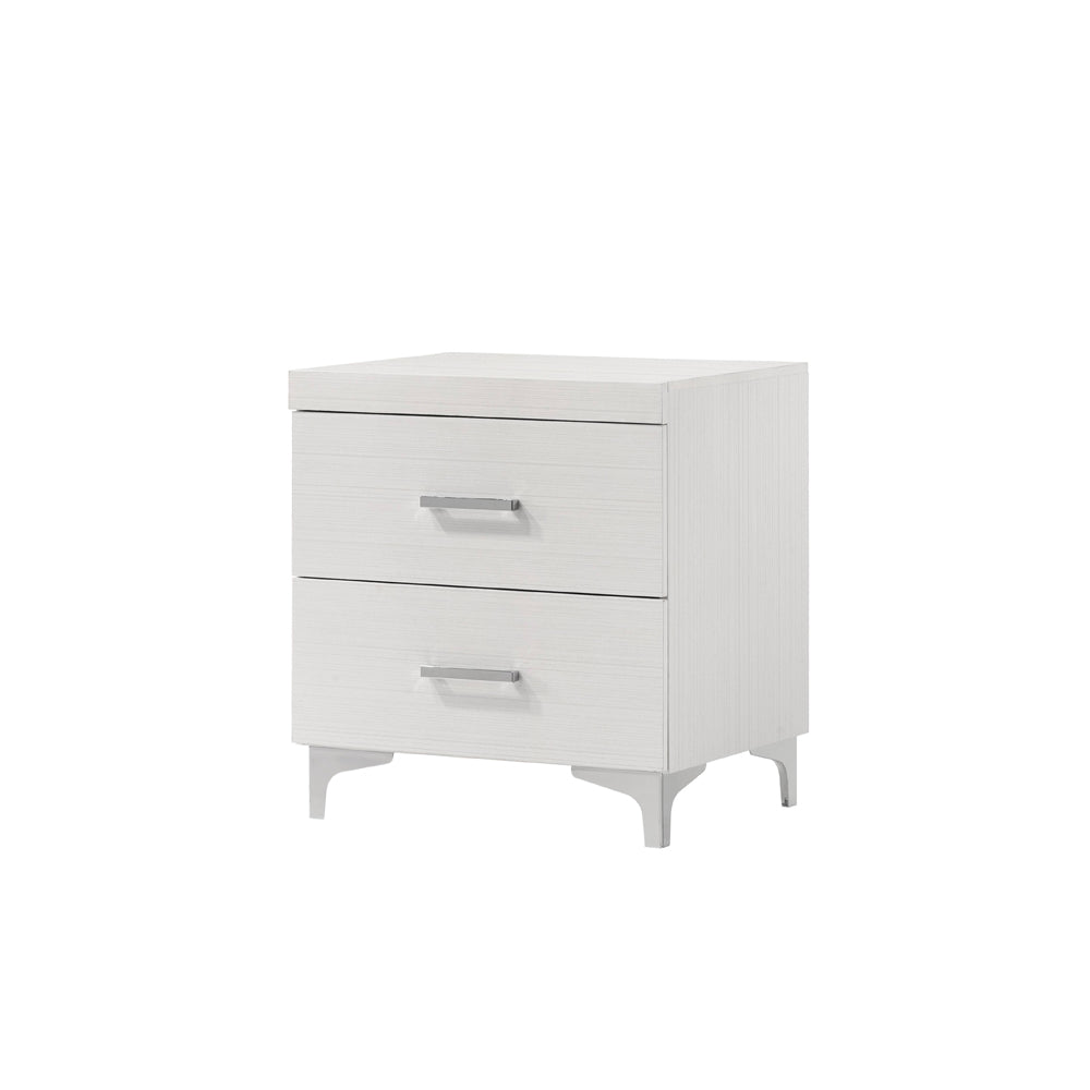 The Casilda bedroom collection will help you create the perfect retreat. In a white finish to easily style and works with various color schemes. Tying each piece together are the metal legs. The bed boasts a PU padded headboard with button tufting in a gray color. The headboard also includes LED lighting to illuminate your room at night. Complete your bedroom with matching case goods.