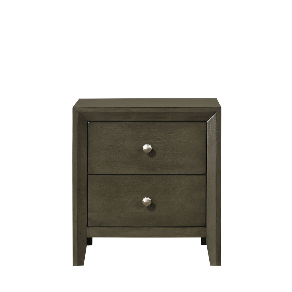 The Ilana contemporary bedroom set is expertly crafted with hand selected woods and veneers in a calming gray finish, featuring a modern slatted headboard design, low profile footboard and wooden tapered legs. With all matching case goods, this bedroom group will sure to refresh your bedroom or guest room.