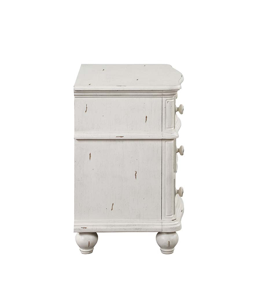 KD LegsWooden Bun LegsPeeling Style DesignDrawer: Metal Side Drawer Glide, 2/3 Extension, DT English Front & Back, Felt Lined on Top Drawer