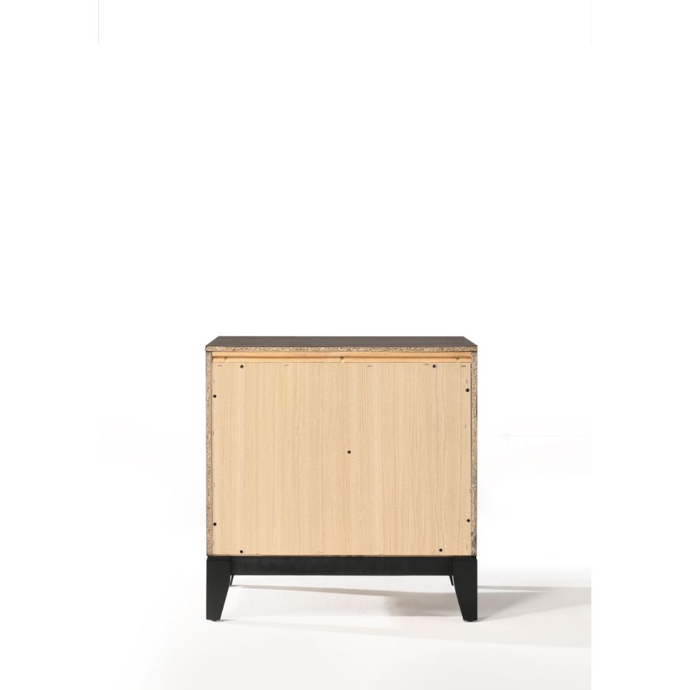 2 Drw Drawer: Glide Center Metal (3/4 Ext.), Dovetail English Front & Back, Felt-Lined Not Included, Safety Stop Included, Manual Close, Hardware: Single Handle, Nickel Brushed Metal Construction: Wooden Case Good: Paper Veneer, MDF, Ply, Chipboard Wooden Tapered Leg [Q&A] Drawer Size: 18 x 13 x 5H (450 x 339 x 124mm) Clearance Floor to Bottom Frame: 6 Inches (140mm)
