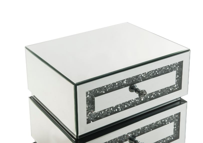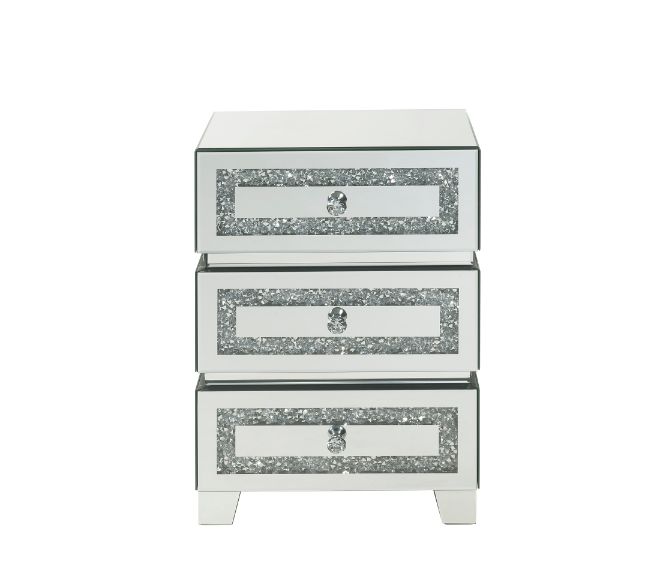 The Noralie Accent Table will add a contemporary touch to any room in your home. With its clean lines and faux diamond inlay, this brilliant accent table showcases a distinctive style for an intriguing look. The table features three storage drawers with self closure and safety stop. This unique accent piece complements a wide range of d cor and its modern design is a useful addition to any room decor.