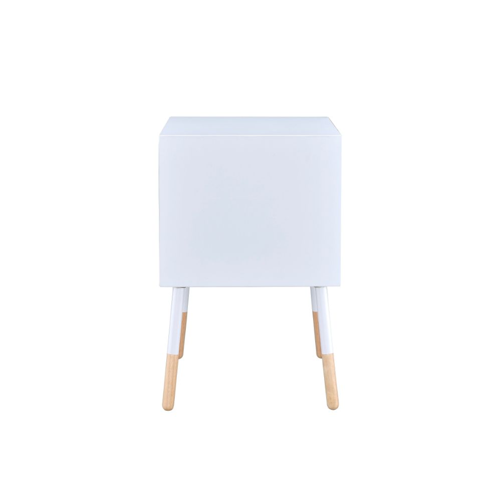 The Sonria II end table offers a contemporary take on a stylish retro design, ideal for your living room, family room, or bedroom. With its open storage compartment and bottom pull out drawer, you can conveniently store your remote controls, magazines, or other small items. The natural wood featured at the base of the legs provides that extra flare to bring any room together. Can be used as an end or side table or pair for either side of the bed for a perfect nightstand. Some assembly required.
