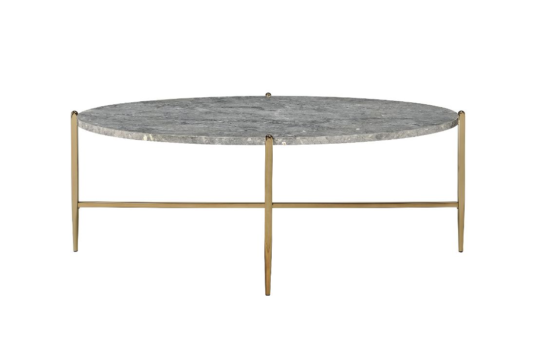 Sleek finish, sharp angles, and stylish designs were incorporated in this stunning modern piece. Shown in a champagne gold finish, the metal open base with X-shape support boasts a simple silhouette that exudes modern elegance. Round faux marble table top complements gold metal frame perfectly, creating a bold visual effect. Make your seating area more comfortable and complete with this voguish coffee table.
