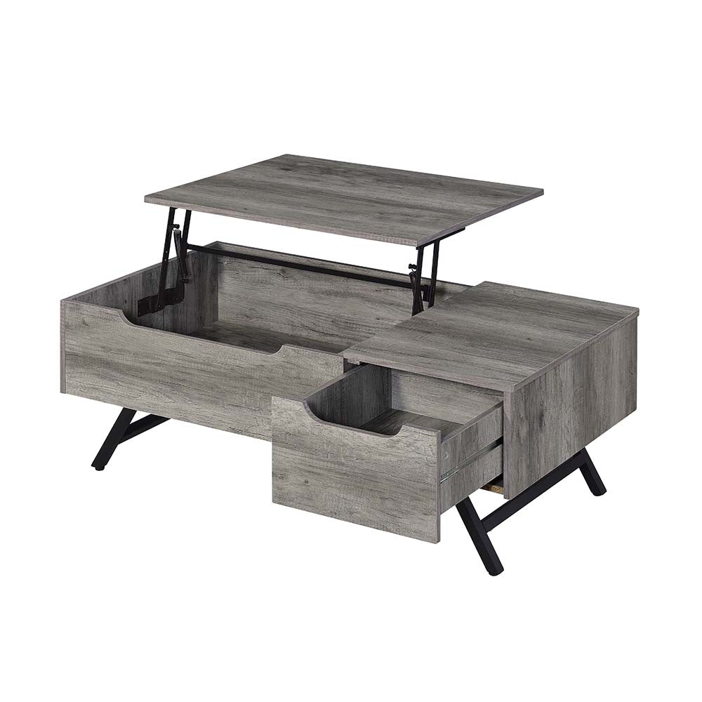 Never leave your couch again. Give your home a distinguished new look with this Throm lift-top coffee table in a gray oak finish. This coffee table offers a spacious surface that conveniently lifts for the ideal multipurpose workspace for you to work from home, surf the web on your laptop, or munch on snacks while relaxing from the comfort of your couch. Underneath the handy lift-top surface is hidden storage for you to stow away home essentials, spare blankets, or board games. Use the side drawer to store any other items you typically wouldn't want your guests to see.